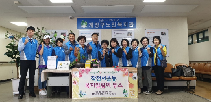 ÀÎõ °è¾ç±¸ ÀÛÀü¼¿îµ¿ ÇàÁ¤º¹Áö¼¾ÅÍ(µ¿Àå ±è¿µ¼ö)´Â Áö³ 24ÀÏ ÀÛÀü¼¿îµ¿ º¸ÀåÇùÀÇü ¹× ¸í¿¹»çȸº¹Áö °ø¹«¿ø 15¿© ¸í°ú ÇÔ²² Ô×Áö¿ªÆ¯È »ç¾÷ÀÎ º¹Áö»ç°¢Áö´ë ¹ß±¼À» À§ÇÑ <º¹Áö¾Ë¸²ÀÌ ºÎ½º¿î¿µ> »ç¾÷À» ÁøÇàÇÏ¿´´Ù.