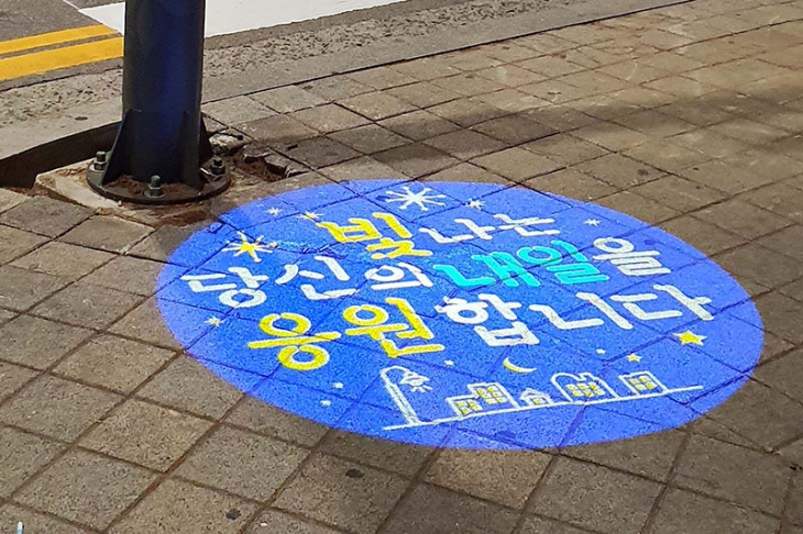 ƯÈ÷, ¹ã ½Ã°£ ¹Ù´Ú¿¡ ºñÄ¡´Â ¹®±¸µéÀº ‘ºû³ª´Â ´ç½ÅÀÇ ³»ÀÏÀ» ÀÀ¿øÇÕ´Ï´Ù.’,‘¿À´Ãµµ ¼ö°íÇß¾î¿ä. ³»Àϵµ Èû³»¼¼¿ä.’µî°ú °°ÀÌ °¢ Àå¼Òº°·Î ´Ù¾çÇÑ °Ý·Á¿Í ÀÀ¿øÀÇ ¸Þ½ÃÁö¸¦ ´ã°í ÀÖ¾î Äڷγª19·Î ÀÎÇØ ÀÏ»ó¿¡ ÁöÃÄÀÖ´Â Áֹε鿡°Ô Å« È£ÀÀÀ» ¾ò°í ÀÖ´Ù.